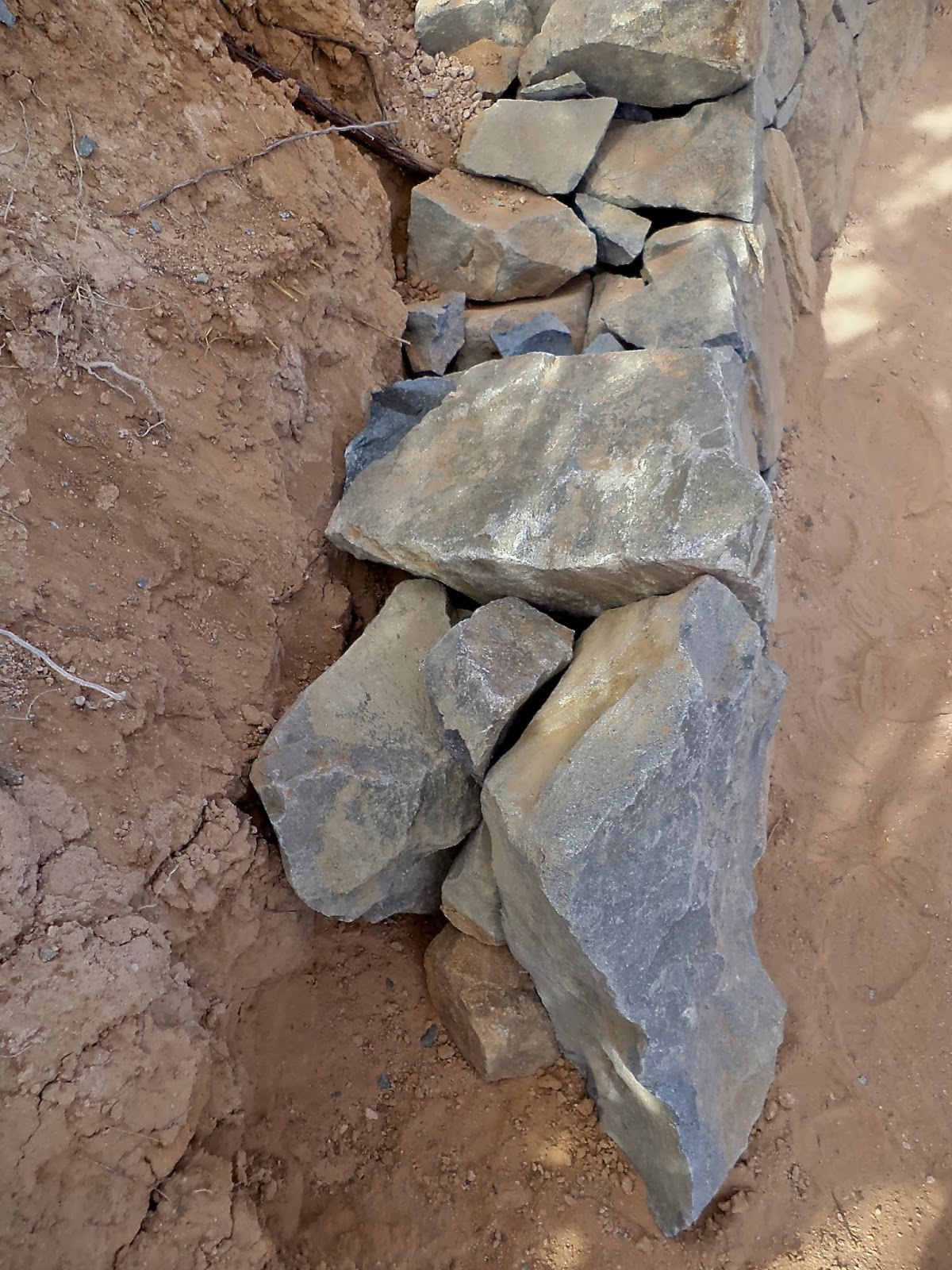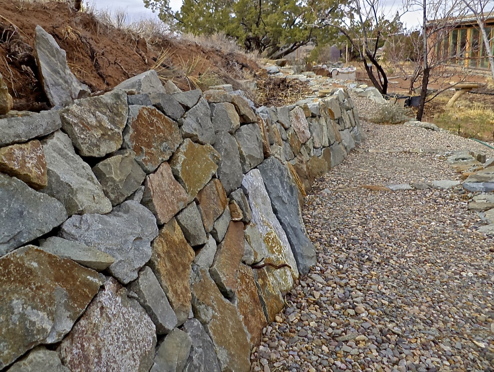 When landscaping around dry stack walls keep in mind that the soil adjacent to the wall