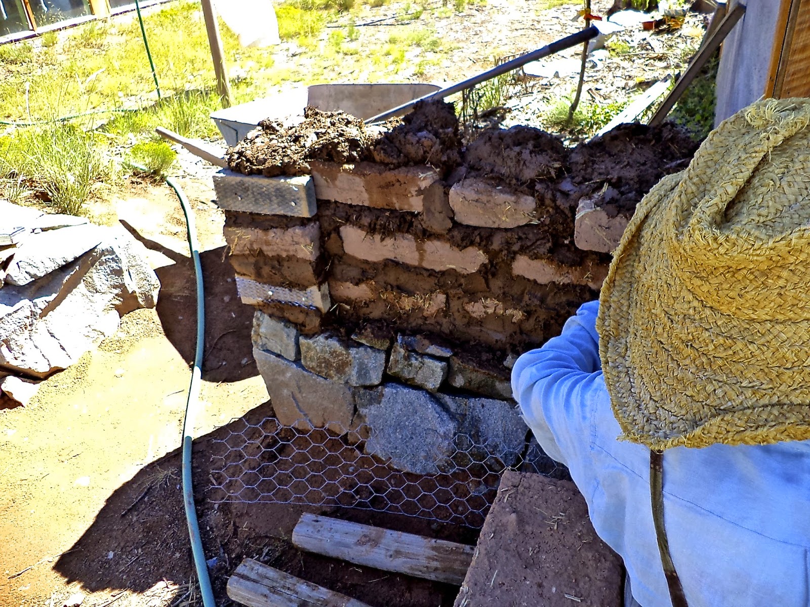In the previous post we made our "gringo blocks" and set up our mud mortar mixing pit.